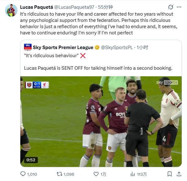 比賽結(jié)束后不久,帕奎塔在社交媒體上轉(zhuǎn)發(fā)了自己染紅的視頻,并配文:“生活和事業(yè)受到影響長達(dá)兩年,卻得不到足協(xié)的任何心理支持,這實(shí)在是荒謬。”